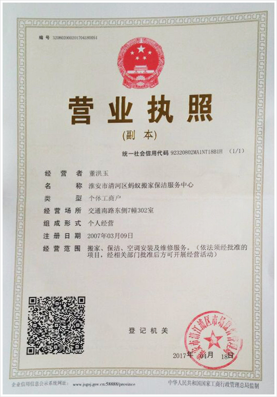淮安市清河區(qū)螞蟻搬家保潔服務中心以滿足客戶需求為己任,以客戶的滿意為標準,為客戶提供一個優(yōu)質的服務平臺。我們在乎您的認可,您的滿意是對我們的支持,我們的員工愿竭誠為您服務。